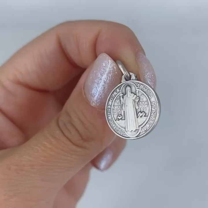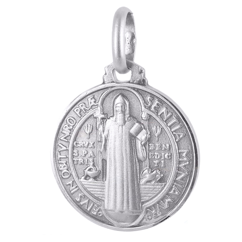 La medaglia di San Benedetto è in argento 925/000 prodotta a conio mediante un processo artigianale altamente esclusivo che rende questa medaglia religiosa un vero e proprio gioiello religioso da indossare. La medaglia di San Benedetto è disponibile in quattro differenti misure, definite come M, L e XL.