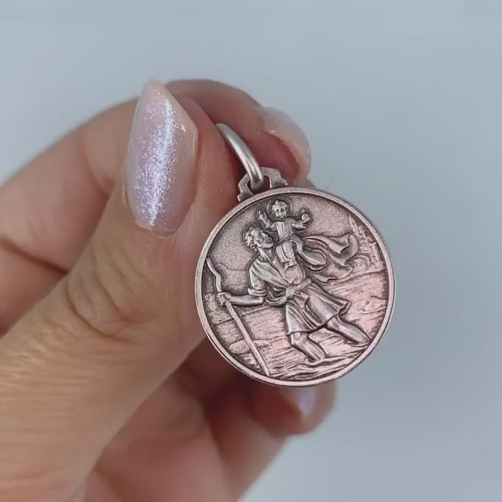 Medaglia o amuleto: San Cristoforo è spesso raffigurato su medaglie o amuleti che le persone portano con sé come simbolo di protezione durante i viaggi. Questi oggetti possono essere appesi negli autoveicoli o indossati come gioielli.