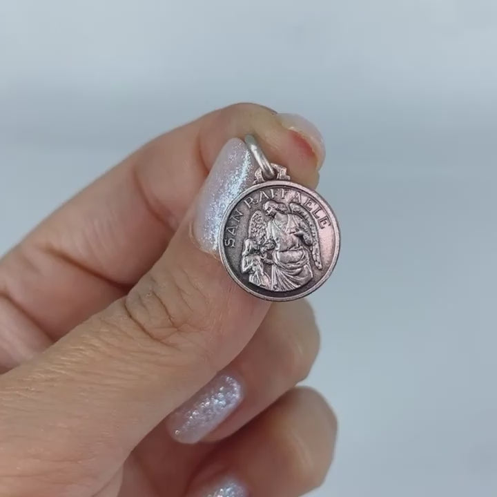 La medaglia di San Raffaele è realizzata a conio sia sul fronte e riporta minuziosamente i dettagli della sua iconografia, meticolosamente realizzata a conio in tutte le sue caratteristiche.