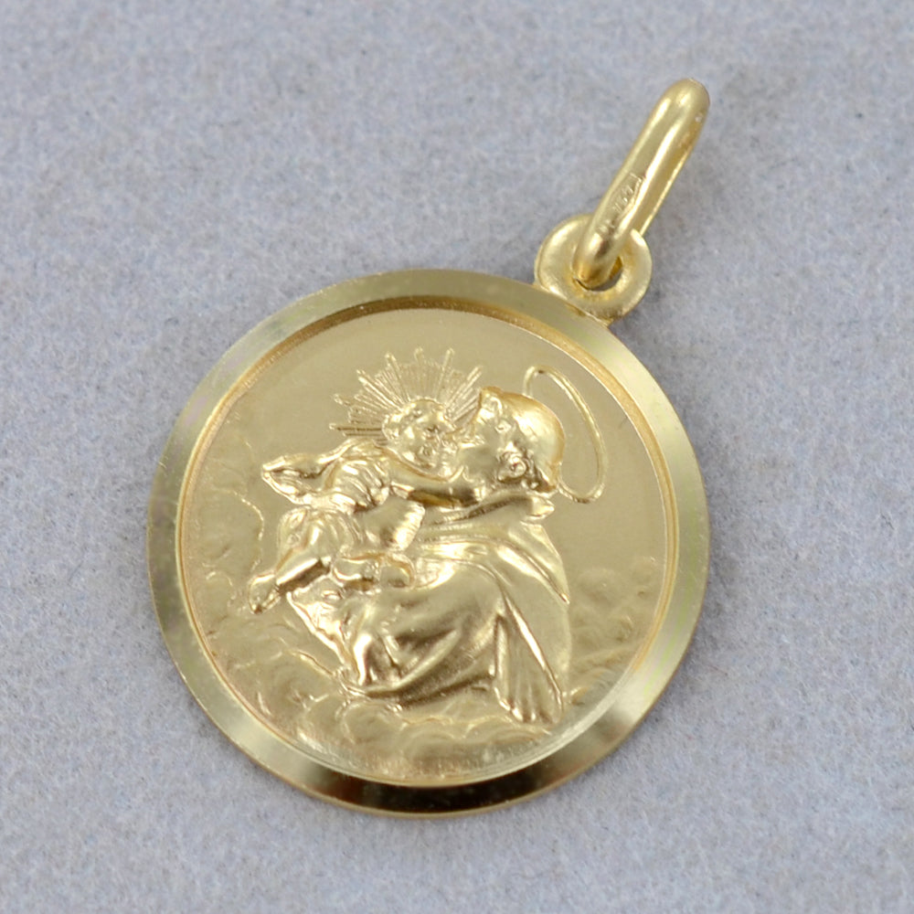 La medaglia di Sant'Antonio è in oro giallo 18 kt 750/000 prodotta a conio mediante un processo artigianale altamente esclusivo che rende questa medaglia religiosa un vero e proprio gioiello religioso da indossare. La medaglia di Sant'Antonio è disponibile in diverse misure, definite comeS, M e L.